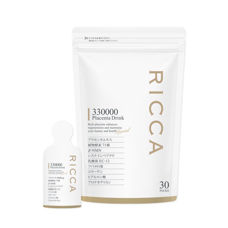 【セレクトビューティー リッカ 330000 プラセンタドリンク】は、当社独自の製法で有効成分を壊さず、気になる原料臭も低減化。高濃度プラセンタエキスに加え、71種の植物酵素やβ-NMN、乳酸菌EC-12、ツバメの巣、コラーゲン、ヒアルロン酸、プロテオグリカンなど、厳選した美容成分を贅沢に配合しました。変化の時期を迎える40代・50代の女性の毎日の美容習慣に取り入れることで、いきいきとした印象をサポートし、自分らしい輝きを磨きます。未来の美しさを育む一歩を、まずは30日間の健康習慣を今日から始めてみませんか?
